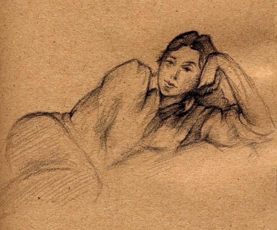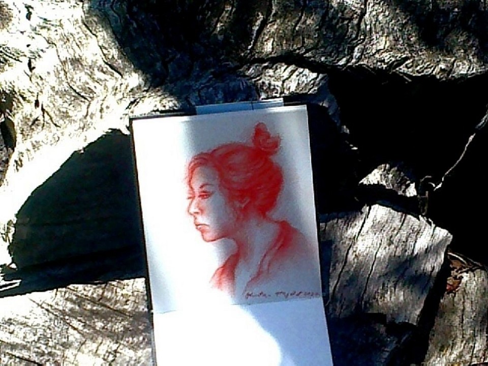 A study of Innes Park - Glaswegian " rolling stone " musician [ much better than Paul McCartney although can not ( ? ) sing ] an immigrant second - hand Aussie, orthodox [ ? ] vegan and the oldest son of Alan and Sheila Park. Diamentions: 13 x 22 cm. Medium: Rotel/Sanguine 112920***, PITT oil base β Faber - Castell. Sketched on Tuesday 12th of June 2012 at the apartment of Karen Buczynski - Lee ; No. 127 Royal Parade, Parkville, Melbourne, Victoria, Australia. © 2012 Waldemar A.S. Buczynski onwards. •ββ β‘β β• * An image is slightly out of focus, so it can not be stolen. "AI" [ Audacious Idiocy ] gadgets will be useless.