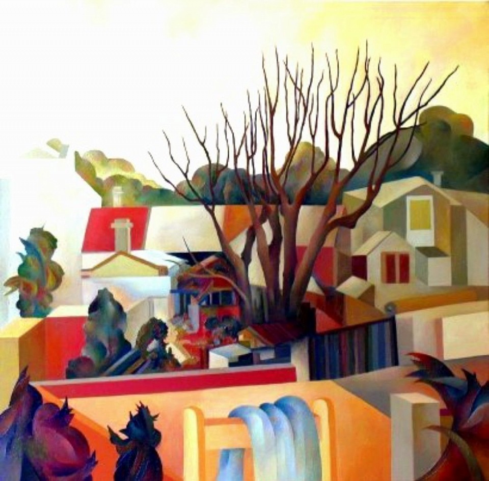 " Winter in Parkville" Diamentions: 100 X 100 cm, Medium: oil on canvas. βββ This work was created in the garden of the No. 127 Royal Parade, Parkville, Melbourne, Victoria, Australia. © 2008 Waldemar A.S. Buczynski onwards. βββ There is a " strange " (?) story behind this painting. Mr Stuart Purves the " Director /Inheritor " of the " Australian Galleries " in Collingwood, Victoria, which his late mother established as the oldest commercial art gallery in Australia, has again ... " expressed his interest in my works " despite the fact since 1993 , after the late Mrs Anne Purves " personally hang my paintings " at their art business, I was not on " Speaking Terms " with " Stuart the Inheritor "...still, when he told me, he will arrive at our Parkville 's apartment " on Tuesday morning at 10AM"...I was ready, simply because painting is my profession not a " hobby " and it was completely irrelevant what I was " thinking " about him. I was waiting for him with about 10 -15 (?) other canvases, but he was " late " so after about an hour I called him on the phone and asked : " What is the problem? Did you have a car accident or is it the case of the notorious for Melbourne " traffick jam"?... Mr Purves's "answer" had shocked and surprised me. He simply said :" I cannot come , because my girlfriend doesn't like your paintings". I never met that " girlfriend " of his. What for? And as the Australian saying goes : " What that has to do with the prize of avocadoes ?!"... βββ The history about this painting went even more "bizarre" because eventually I published this image/ visual on the " internet " and to my annoyance, it was within days ADVERTISING some " Melbourne's tourist website". I was furious, because they didn't even contact me, so I sent that travel agency an email : if you want to use my visual that's fine, but : 1) How much are you going to be paying me for using my WORK as a part of your advertising campaign? And (2) ... if , you are not going to do it , my lawyer will sue you! Well, the idiots never contacted me, but the good news was they INSTANTLY deleted my " Winter in Parkville". βββ " There is no vaccine against stupidity " - Albert Einstein βββ The REAL reason this image was created at the first place, had NOTHING to do with the mentioned " folks " but with a provincial Italian " geometer " from the town of Sansepolcro in Tuscany , in Italy, whose name was : Piero della Francesca [ look Him up ... if interested in the Science of " Painting" ]. •βββ‘β β‘ββ•